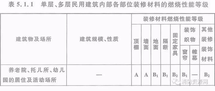 一、當(dāng)設(shè)置在單層、多層民用建筑時,內(nèi)部各部位裝修材料的燃燒性能等級,不應(yīng)低于《建筑內(nèi)部裝修設(shè)計防火規(guī)范》5.1.1的規(guī)定。