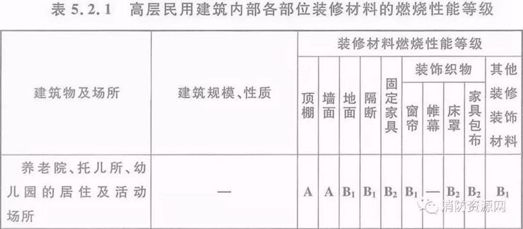 二、當(dāng)設(shè)置在高層民用建筑時,內(nèi)部各部位裝修材料的燃燒性能等級,不應(yīng)低于《建筑內(nèi)部裝修設(shè)計防火規(guī)范》5.2.1的規(guī)定。