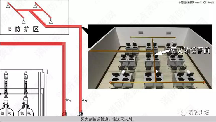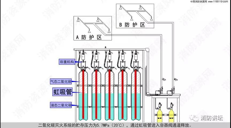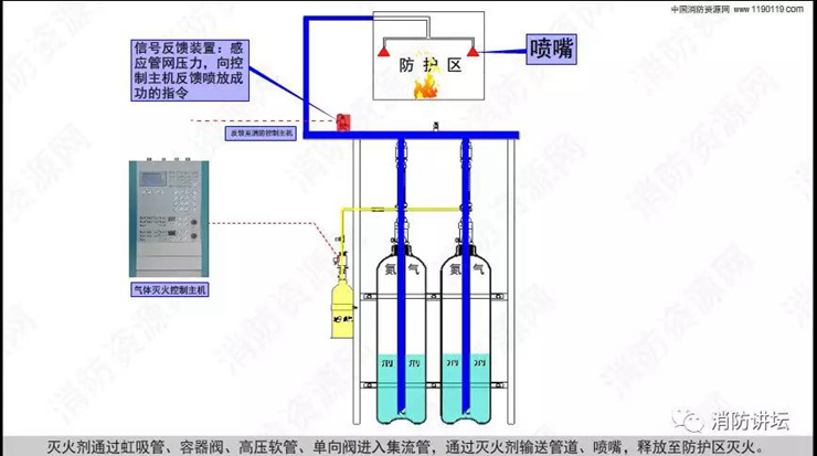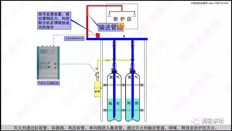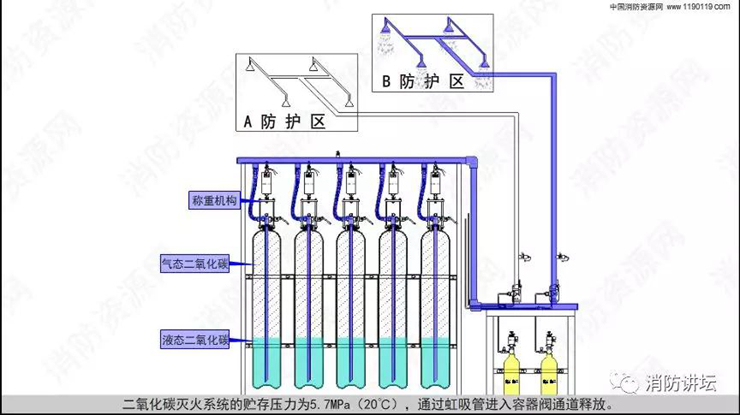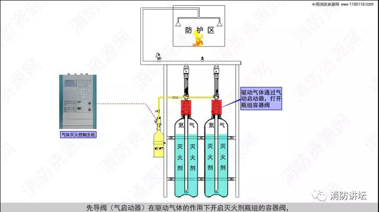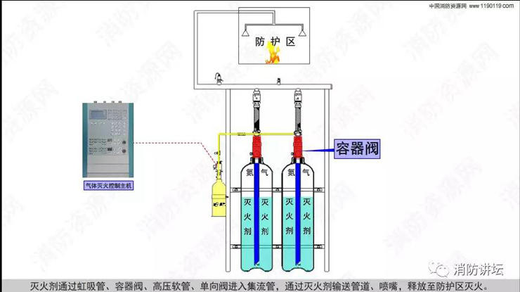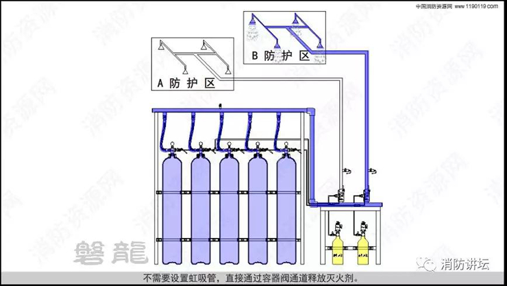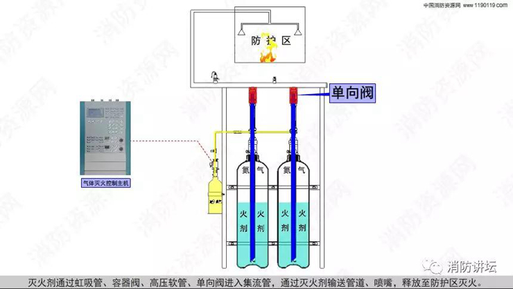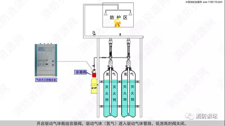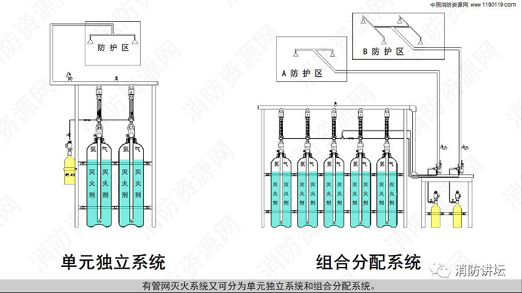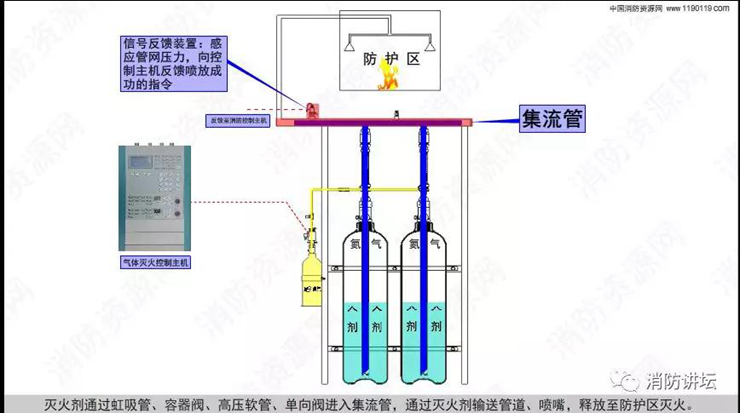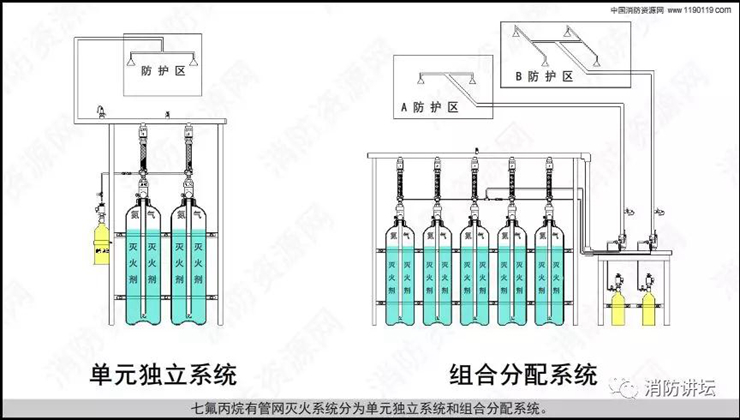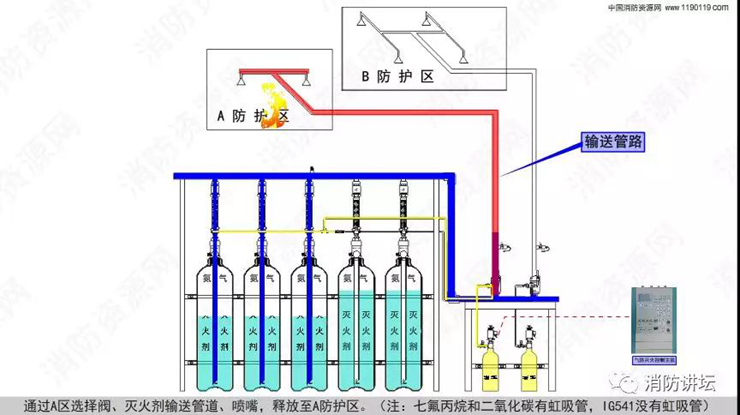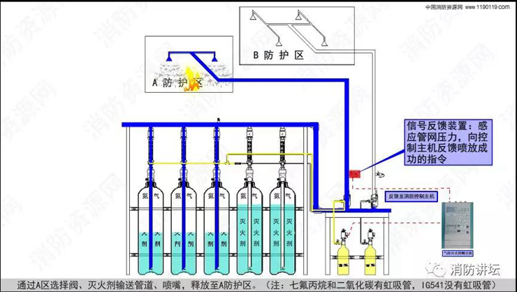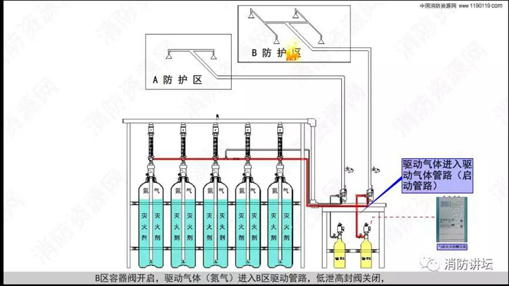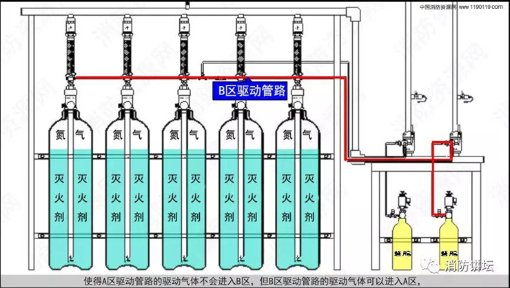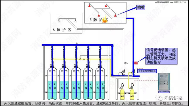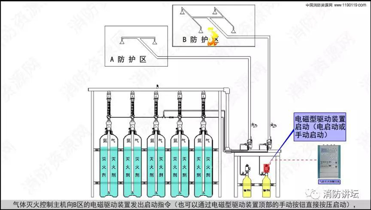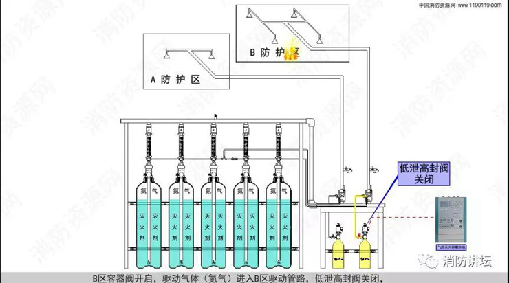 組合分配系統(tǒng)中,多個防護區(qū)的選擇閥和滅火劑瓶組如何實現(xiàn)自動分配?