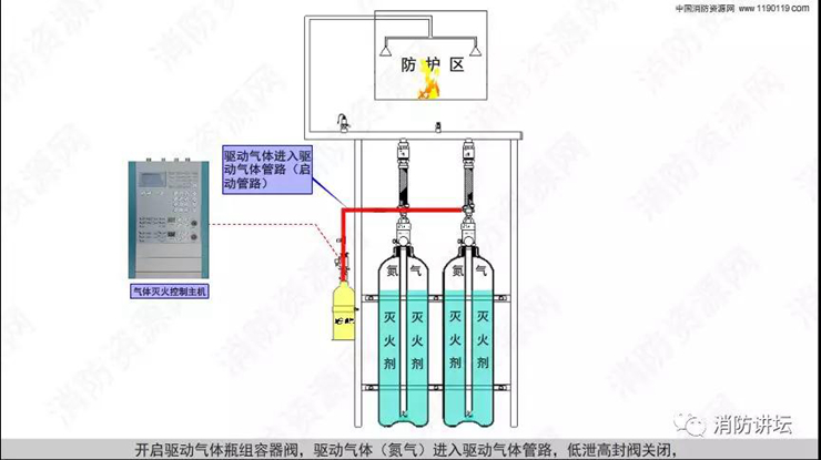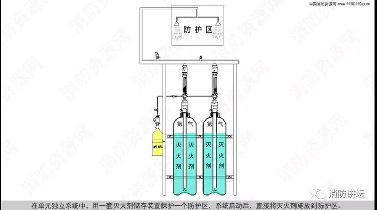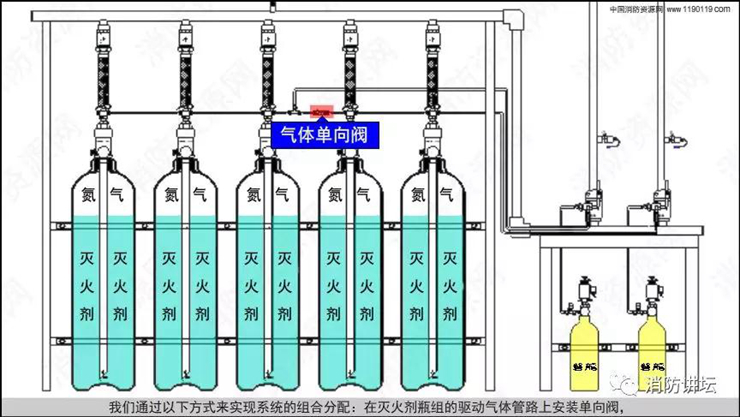 組合分配系統(tǒng)中,每個防護區(qū)需要啟動的滅火劑瓶組都是不一樣的,怎樣分配控制?