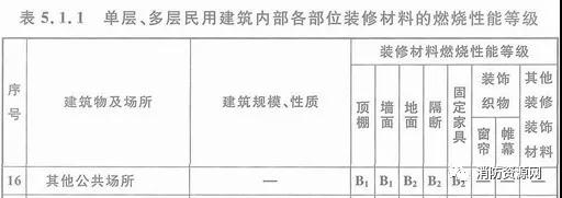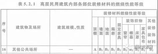 2、高層宿舍建筑內(nèi)部各部位裝修材料的燃燒性能等級(jí),不應(yīng)低于《建筑內(nèi)部裝修設(shè)計(jì)防火規(guī)范》5.2.1規(guī)定: