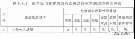 3、地下宿舍建筑內(nèi)部各部位裝修材料的燃燒性能等級(jí),不應(yīng)低于《建筑內(nèi)部裝修設(shè)計(jì)防火規(guī)范》5.3.1規(guī)定: