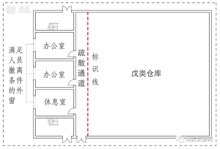 辦公休息室與生產(chǎn)儲存場所屬于不同的建筑分類和功能屬性,當辦公休息室bi需設(shè)置于生產(chǎn)儲存場所時,有必要通過普通隔墻(房間隔墻或疏散走道隔墻)分為相對獨立的區(qū)域,混設(shè)不應(yīng)許可,且辦公室和休息室不應(yīng)通過生產(chǎn)儲存場所疏散。