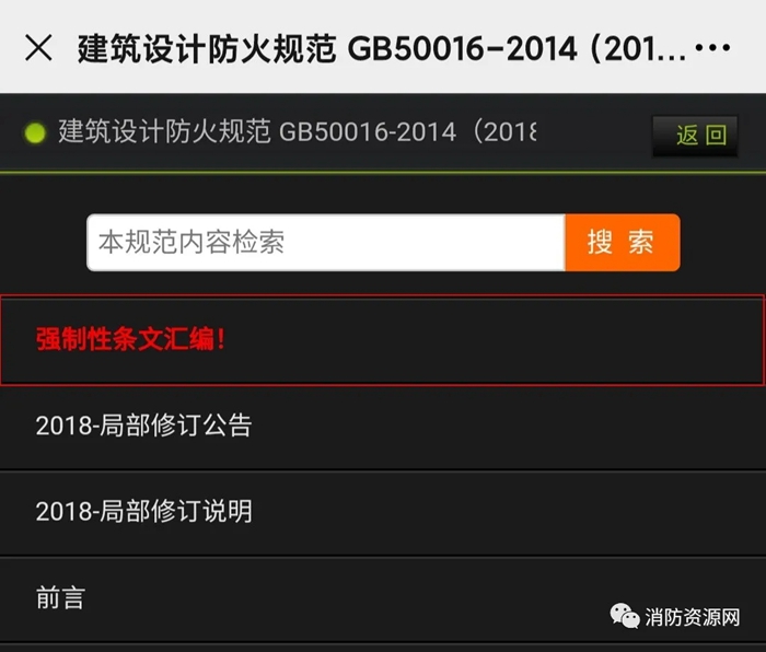 《消防資源網》重大升級! 新增強制性條文匯編,以饗大眾! 1. 規(guī)范的目錄首頁,新增強制性條文匯編: 2. 新增強條匯編、部局文件、地方標準、行業(yè)標準、答疑匯編等多個板塊: 了解更多功能↓↓↓ 一、..